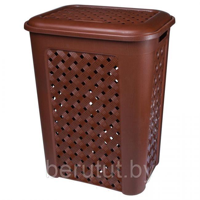 Корзина выполнена из прочного плетёного пластика. Через специальные отверстия на стенках и крышке поступает воздух и содержимое прекрасно дышит. Размер отверстий около 1х1 см. Внутренние стенки гладкие, и неспособны повредить бельё и сделать на нём затяжки.
