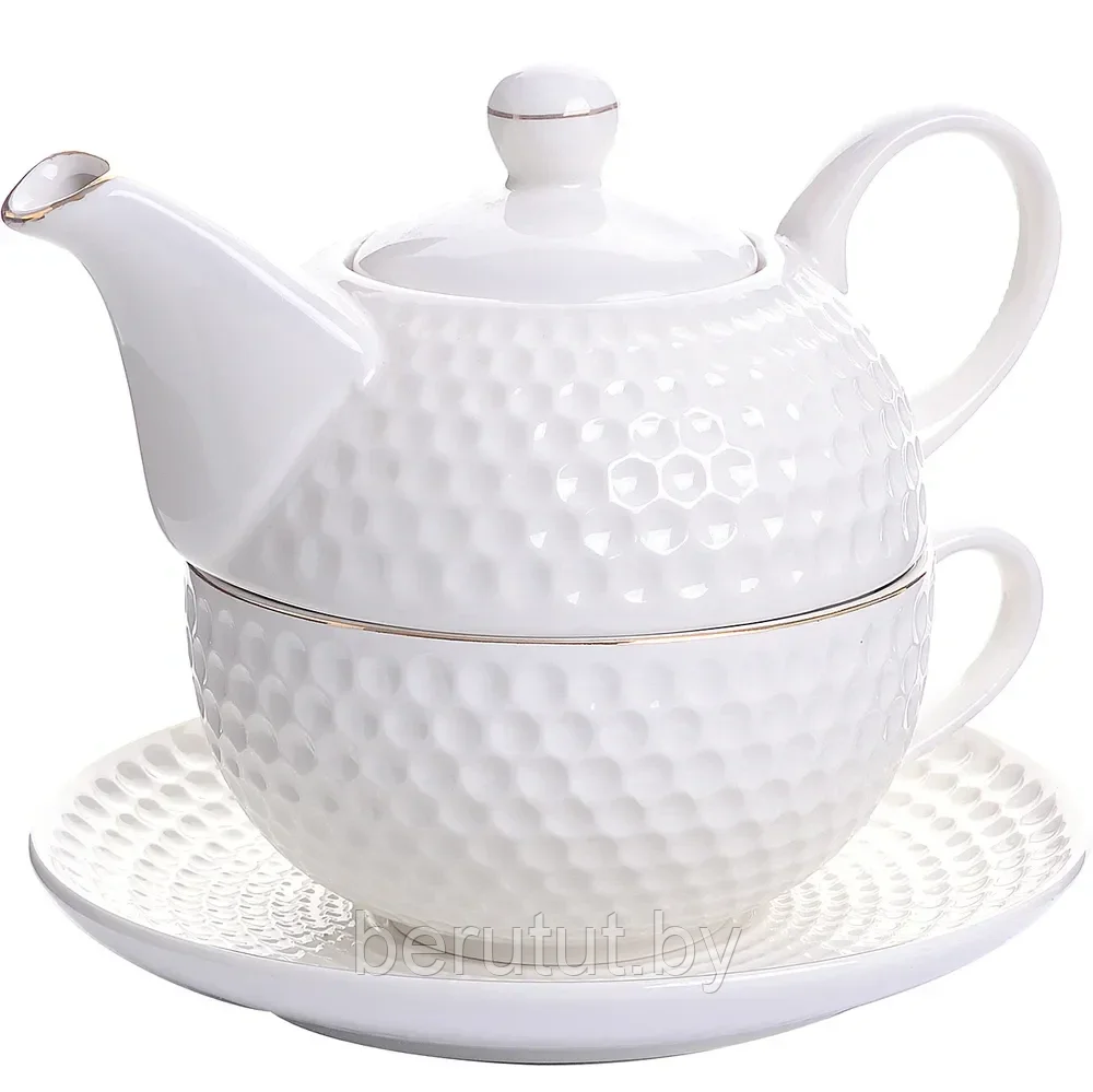 Набор чайный состоит из заварочного чайника, чашки и блюдца. Набор посуды выполнен из фарфора. Такой набор понравится любителям оригинального дизайна и станет неотъемлемым атрибутом чаепития. Набор можно использовать в домашних условиях либо в общественных местах (кафе, бар, ресторан).