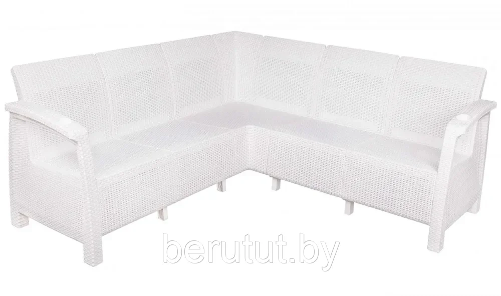 Диван угловой Ротанг Плюс (Белый) из пластика– идеальный вариант для комфортного отдыха в саду. На его подлокотниках расположены отверстия для напитков. Добавив к дивану еще несколько элементов этой серии вы сможете оформить чудесную зону отдыха для всей семьи и гостей и прекрасно провести время на свежем воздухе. Пластиковая садовая мебель имеет небольшой вес, поэтому вы без труда сможете перемещать свою зону отдыха в наиболее комфортное место.